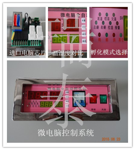 3、控制器:由電腦主板和溫濕度探頭組成.孵化機(jī)中的重要組成部分,所有電路均有它來(lái)控制(相當(dāng)于人體的大腦神經(jīng)系統(tǒng)),溫濕度探頭的作用是精確的把孵化機(jī)內(nèi)的溫濕度傳感到控制器顯示屏.